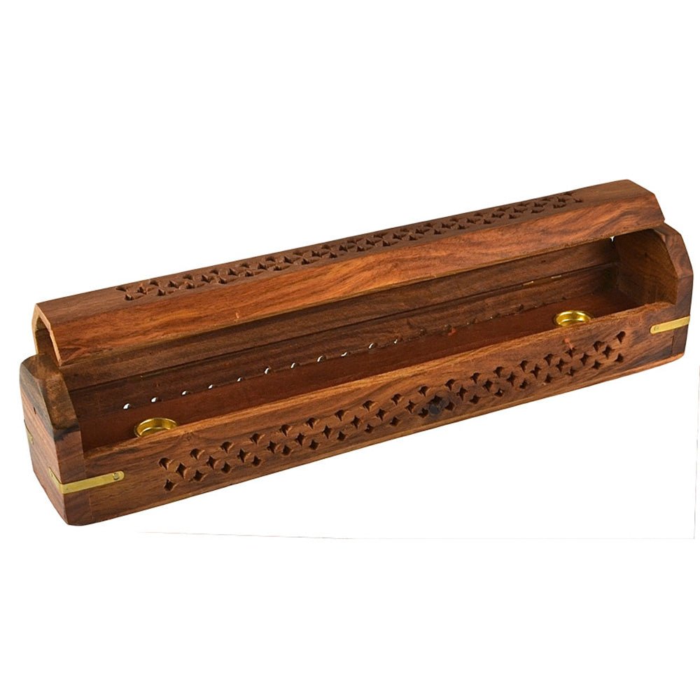 Crafted with quality polished wood, the Celestial Coffin 12" Incense Burner features a stylish coffin design and comes in multiple colors and screen patterns for a personalized touch.