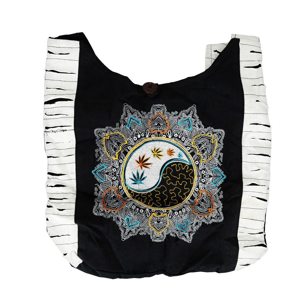 Embrace the harmony of style and functionality with the Yin Yang Hemp Leaf Mandala Sling Bag. Handmade in Nepal, this bag is a symbol of artisanal excellence for the free-spirited at heart.