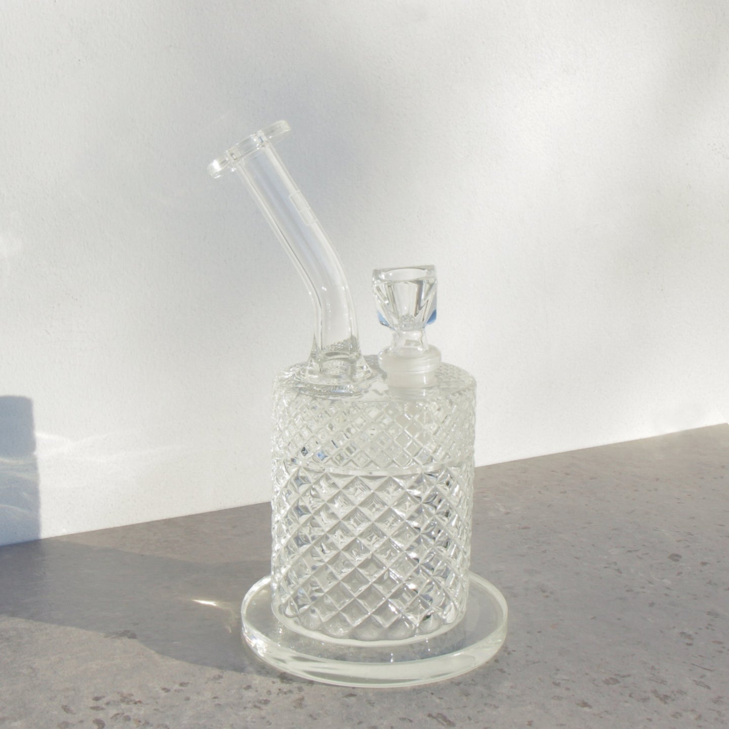 The Jane West Twenties Collection water pipe exudes meticulous attention to detail. Its solid, sturdy base and vertical design make it user-friendly for both beginners and seasoned consumers. The signature custom bowl, with a triangular shape designed to enhance the flavor of dry herbs, adds to the versatility of this piece as it can also accommodate concentrates with a banger. The wide chamber and ergonomic mouthpiece allow you to savor the thick smoke with each inhale, providing a taste experience like no other. This modern yet timeless creation, incorporating the classic sophistication of Jane West, is a true homage to the Twenties. With a detachable downstem and customized bowl, maintaining the pristine condition of this piece is effortless.