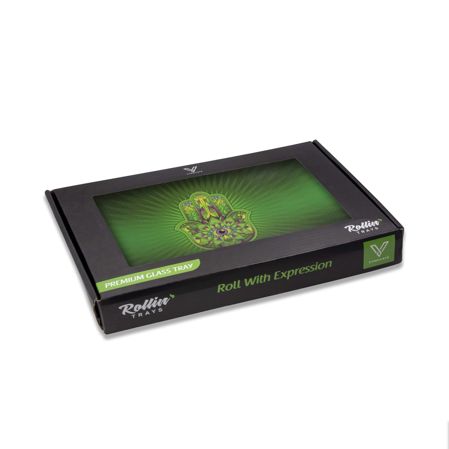 The V Syndicate Hamsa Green Glass Rollin' Trayis available in 2 sizes –