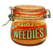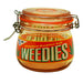The jars feature an exterior decal for "Weedies" and each one has a metal-hinged lid with a colored silicone seal to keep the interior airtight.