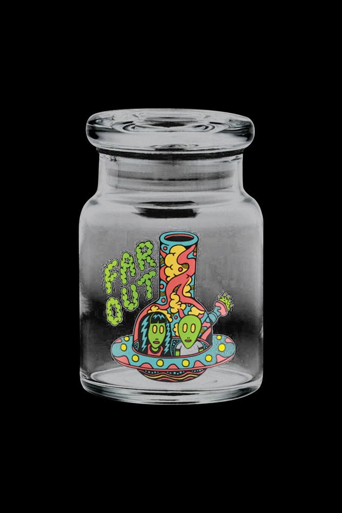 The 420 Science Killer Acid Pop Top Jar is made with a solid glass lid that features an airtight plastic gasket - guaranteed to keep your herbs nice and fresh! These glass jars are machine blown in the United States and features a permanent baked on decal. The tight seal creates an air-vacuum that you'll hear 'pop' every time you open your jar. Available in 4 sizes: Extra Small: 2.75"x2.25", Small: 3.25"x2.5", Medium: 4"x3", and Large: 4.5"x3.5".