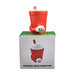 - Red and white mug in the shape of a classic plastic cup with ridge lines