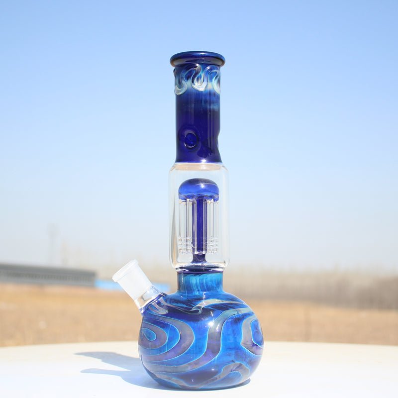 The design features a mix of several different shades of blue and other colors that swirl around the body of the bong. These colors product a calming effect that enhance every smoking experience.
