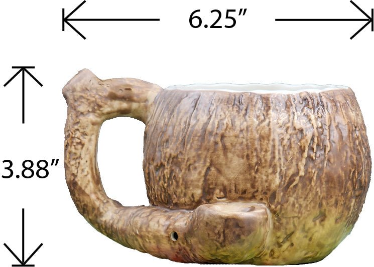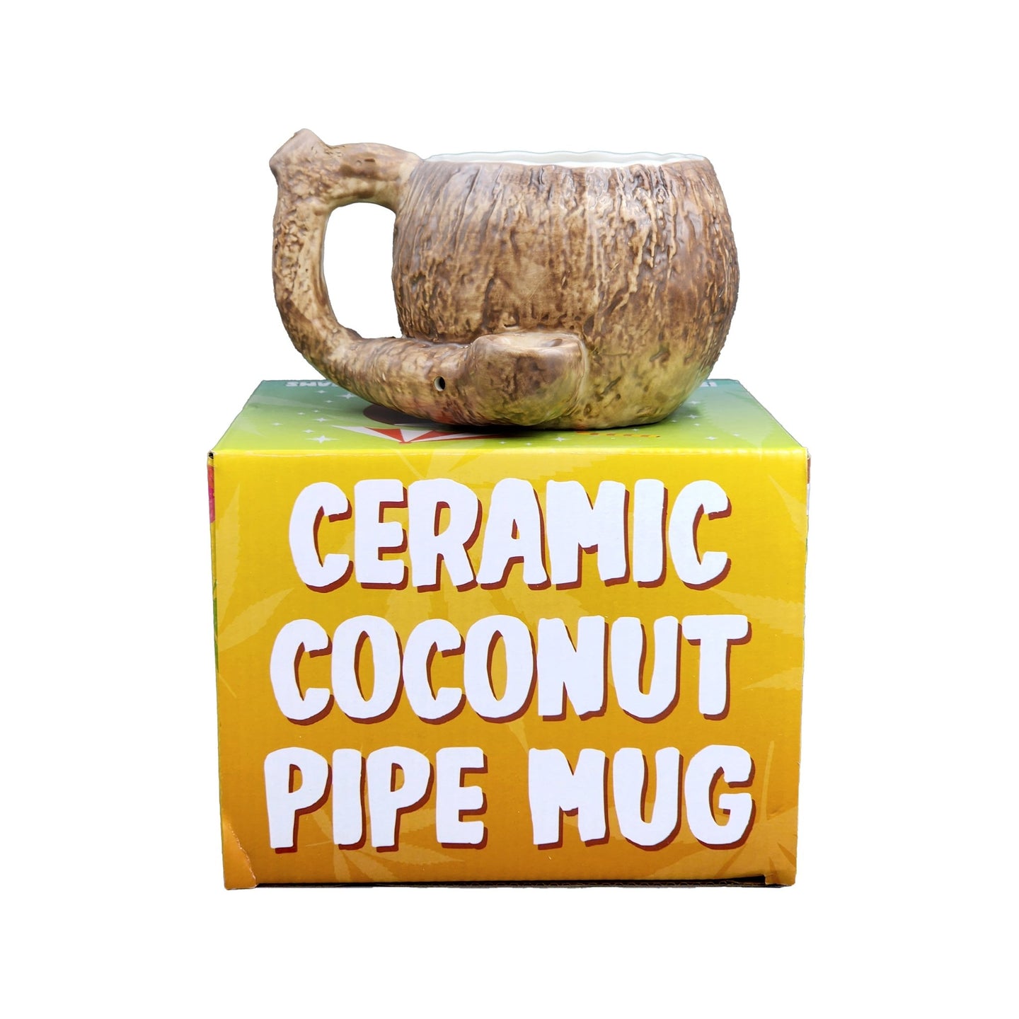 Attached to the front of the mug is a pipe where you can pack it and light it. The smoke filters up the hollow handle to the mouthpiece on the top, allowing you to enjoy a smoke with your steaming coffee. It is microwave and dishwasher safe and comes packaged in a color gift box. This product is recommended for adult use only.