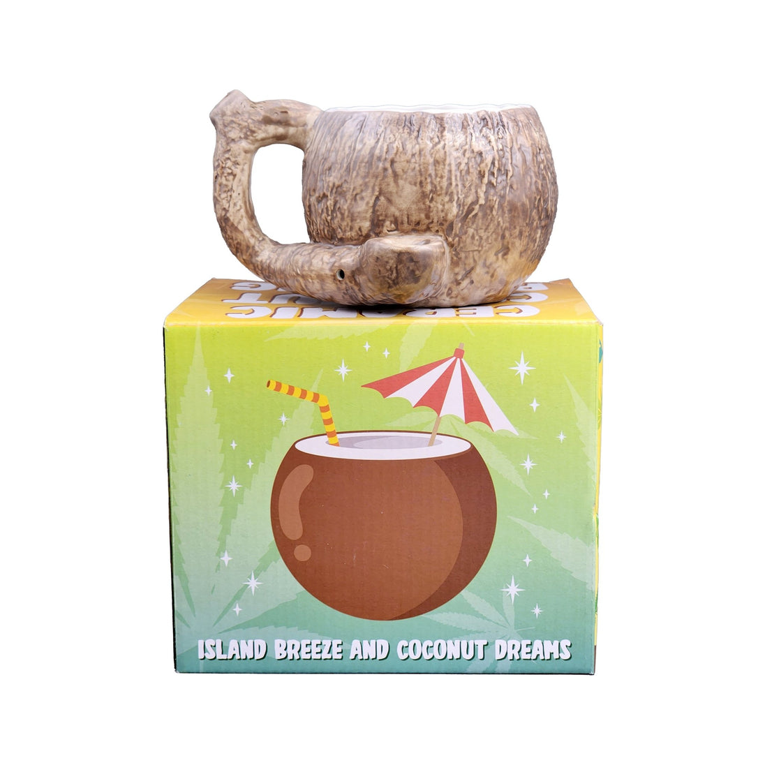 This fabulous Coconut Mug is made of ceramic. It features a realistic rough-looking textured coconut husk in tones of brown and cream.
