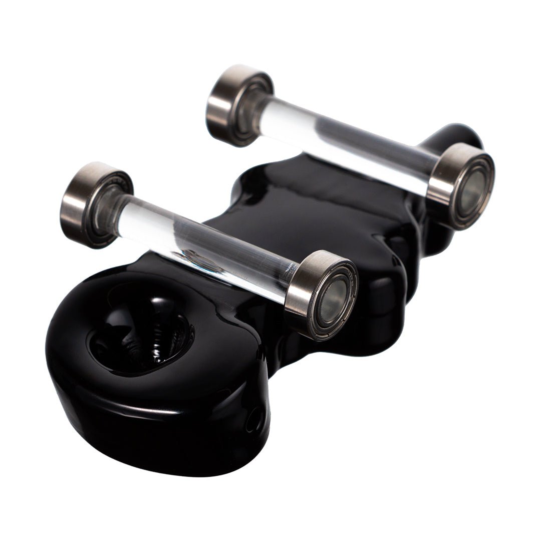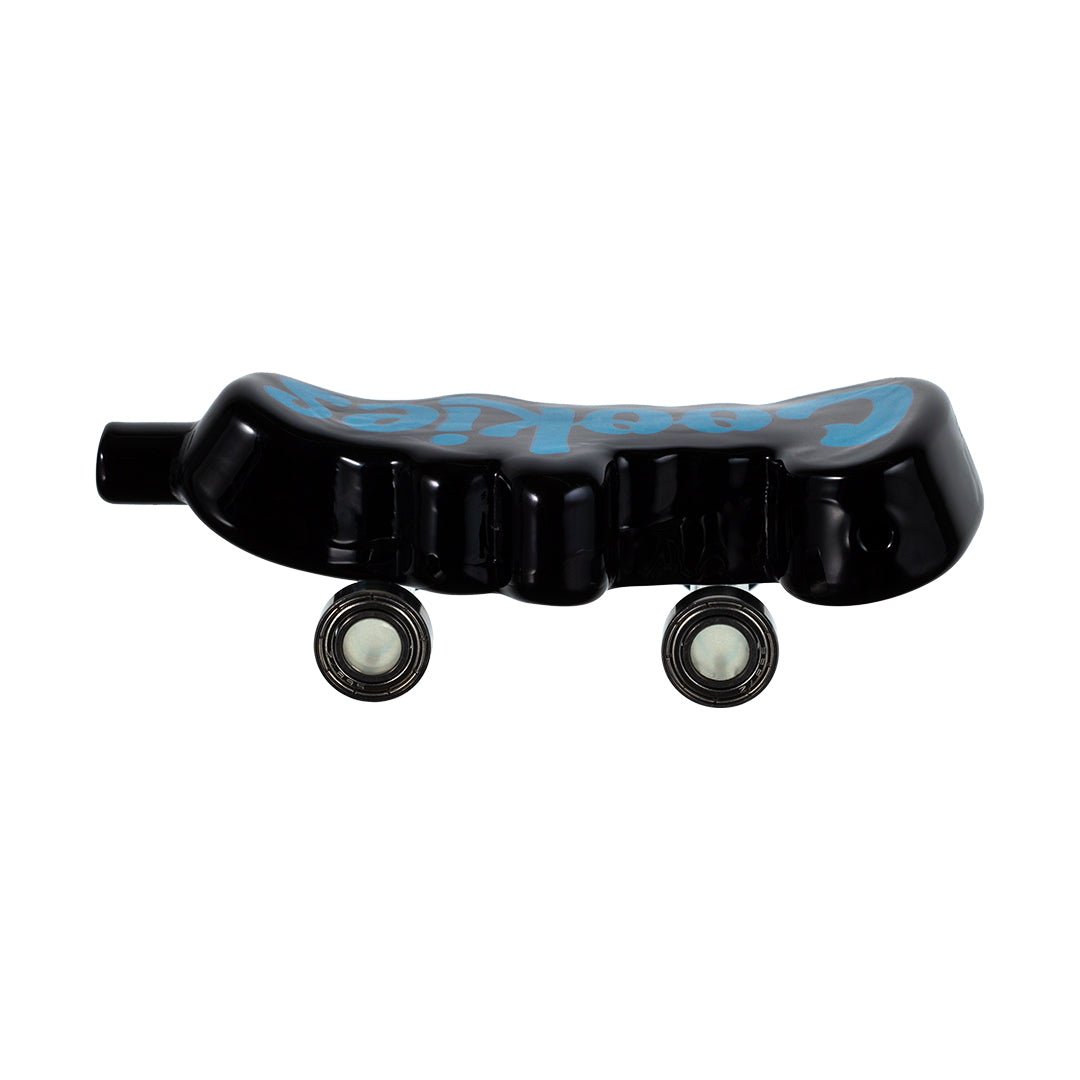 Skateboard-shaped hand pipe featuring the iconic Cookies logo and functioning wheels!