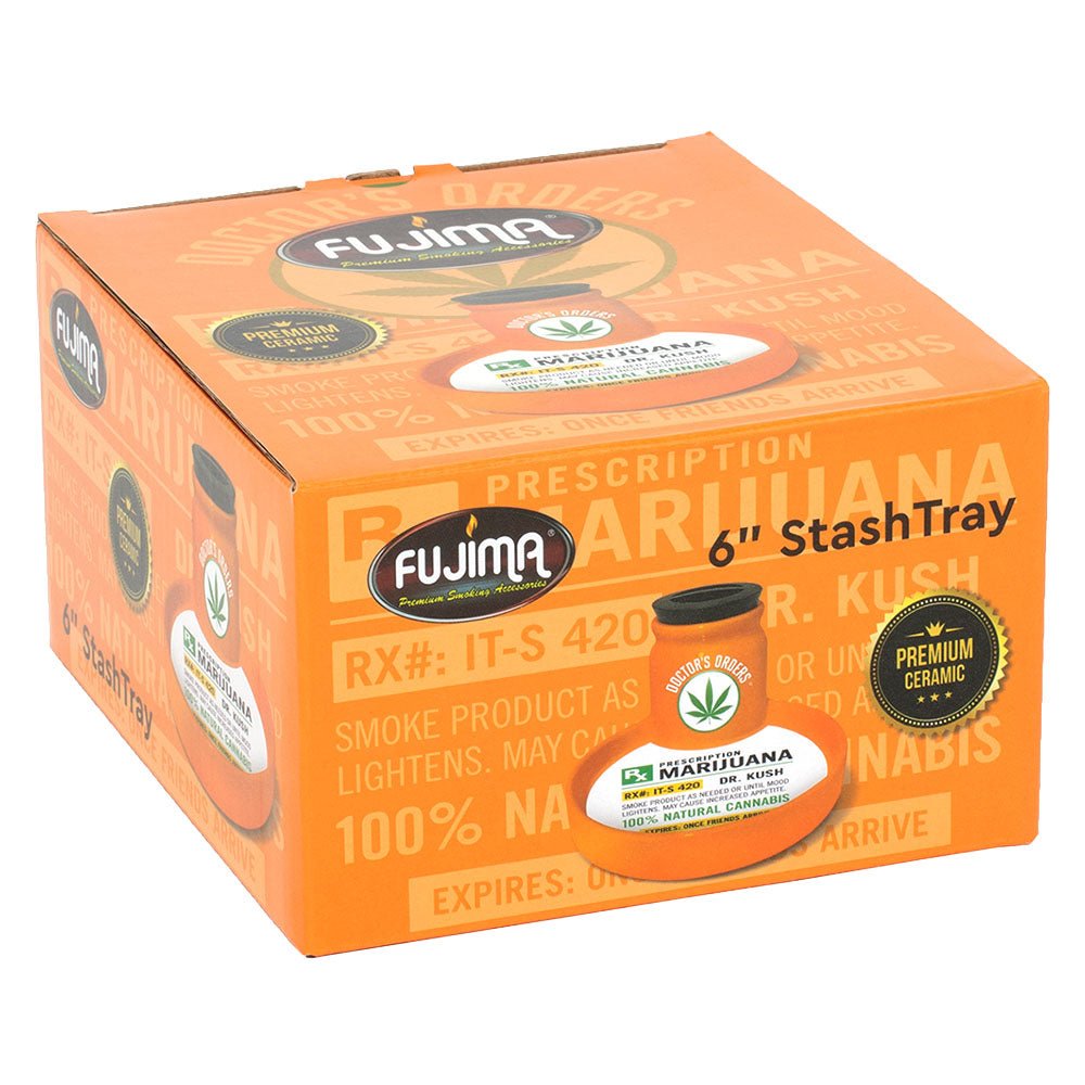 Introducing the Fujima Ceramic 2 in 1 Airtight Stash Tray! The perfect combination of a 5 inch diameter ashtray and a 3 inch tall stash jar with a 2.25 inch diameter. With an airtight silicone lid and multiple design options to choose from, this product is both functional and visually appealing. Don't miss out on this versatile and stylish addition to your smoking essentials!