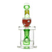 Featuring our vibrant green borosilicate, our trusted base-mounted showerhead perc, a barrel-can style chamber/splash guard, a pitched neck for splash, we've got an iconic piece for the ages.