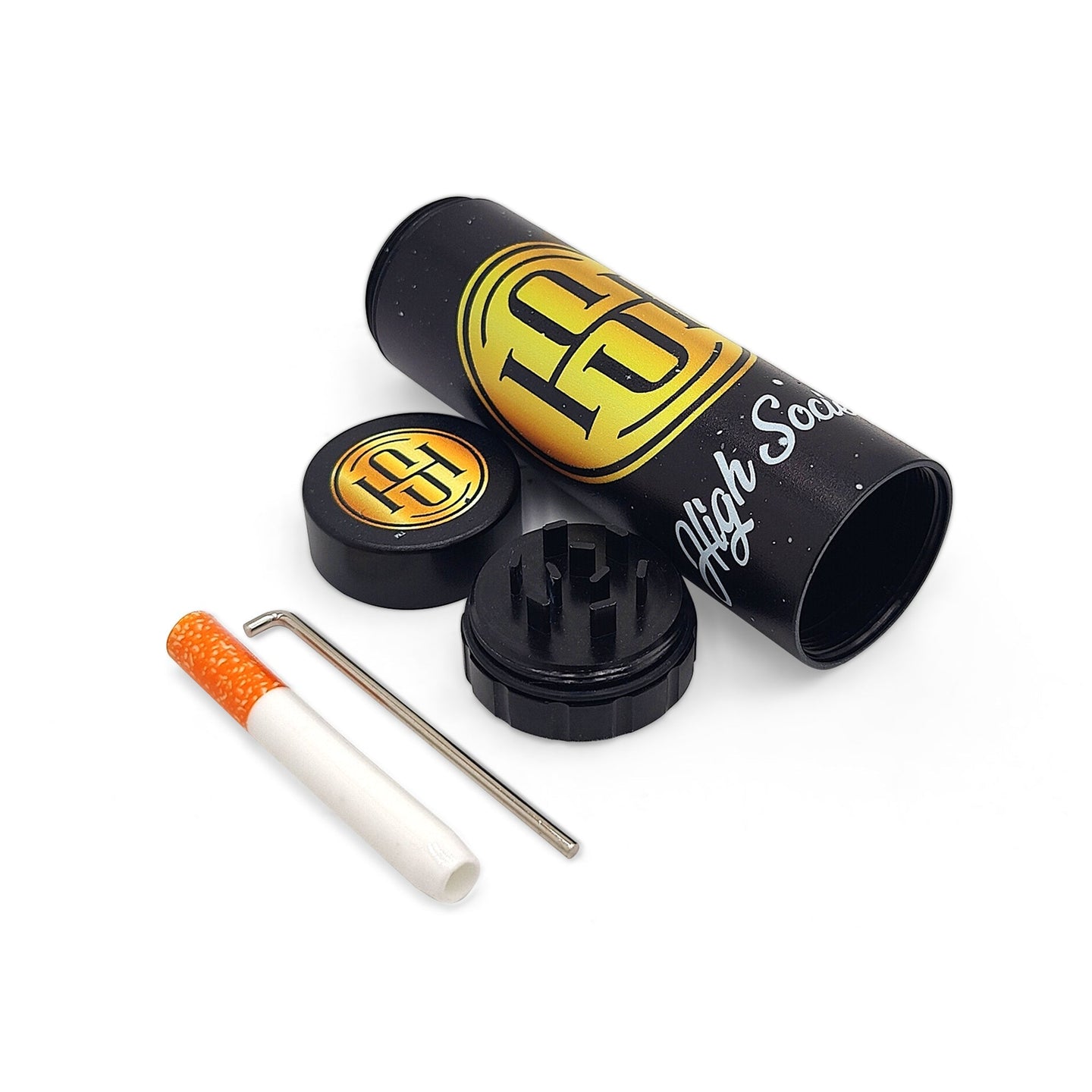 If you like to hit and run, you need a good dugout. Dugouts have been a staple product in smoke shops, yet many people havenβt heard of them. They are essentially a container that holds ground herb and a one-hitter pipe. Dugouts provide the perfect tool set for on the road consumption of your herbs. Considering that we are High Society, we wanted to take the traditional dugout formula and add a built in herb grinder into the mix. Now you have everything you need minus the lighter to have an awesome sesh anytime and anywhere.