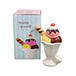 - Designed to look like an old fashioned ice cream Sundae in a white parfait glass