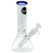 Our signature waterpipe features sturdy American borosilicate glass with a heavy wall design measuring 38mm in diameter. Complete with an ice-pinch feature and beaker base for added convenience during use. The mouthpiece is elegantly wrapped with your choice of green slyme, purple slyme, amber resin, jet black onyx or sapphire blue accents – all showcasing exquisite attention to detail.