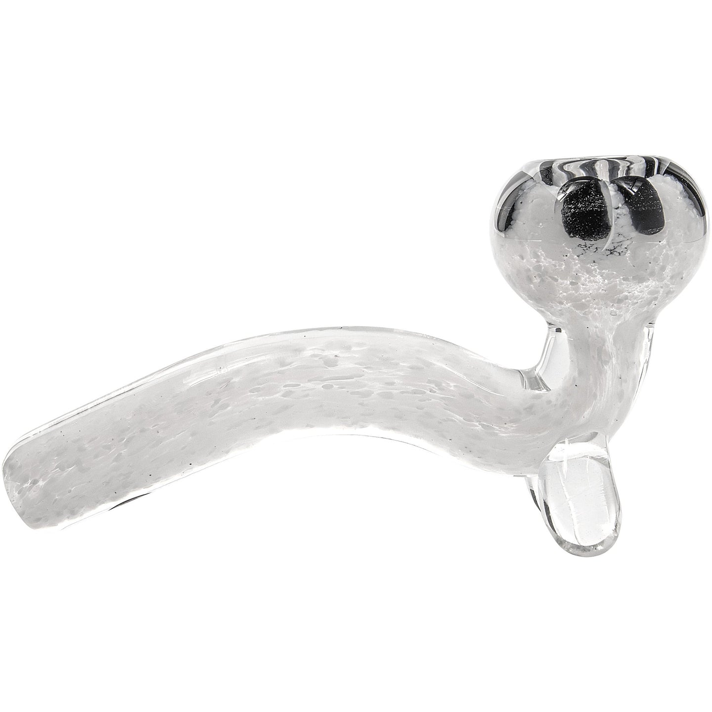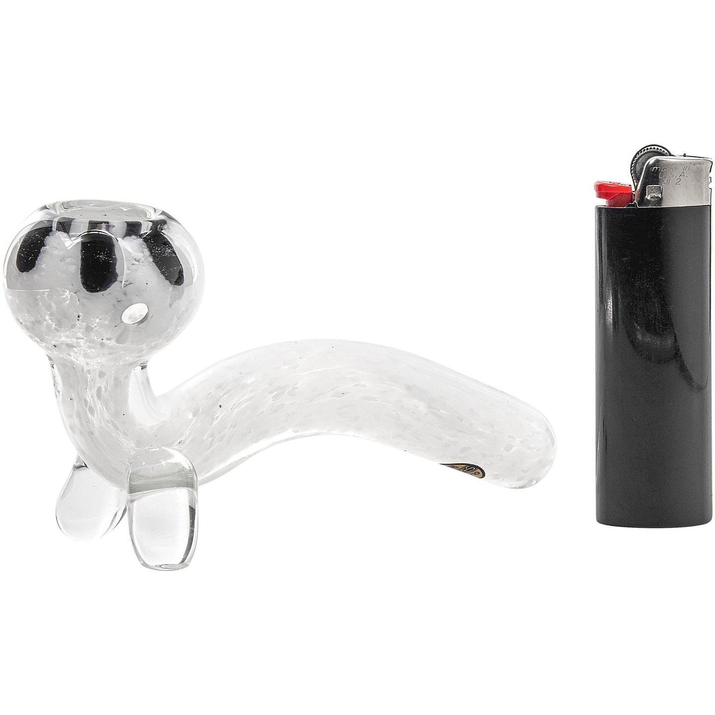Introducing the LA Pipes Black 'Daisy' Sherlock, a handcrafted masterpiece from Los Angeles, California. Standing at approximately 4.5 inches long, this solid borosilicate glass pipe is designed for dry herbs and flower enthusiasts. The inside-out white frit body showcases a stunning cane daisy head, adding an artistic touch to your smoking experience. With clear marble feet providing stability, this Sherlock pipe not only looks stylish but also delivers smooth hits. Made with precision and care, LA Pipes has established itself as a trusted brand in the industry. Elevate your smoking sessions with this premium glass sherlock pipe that combines functionality and aesthetics seamlessly.