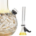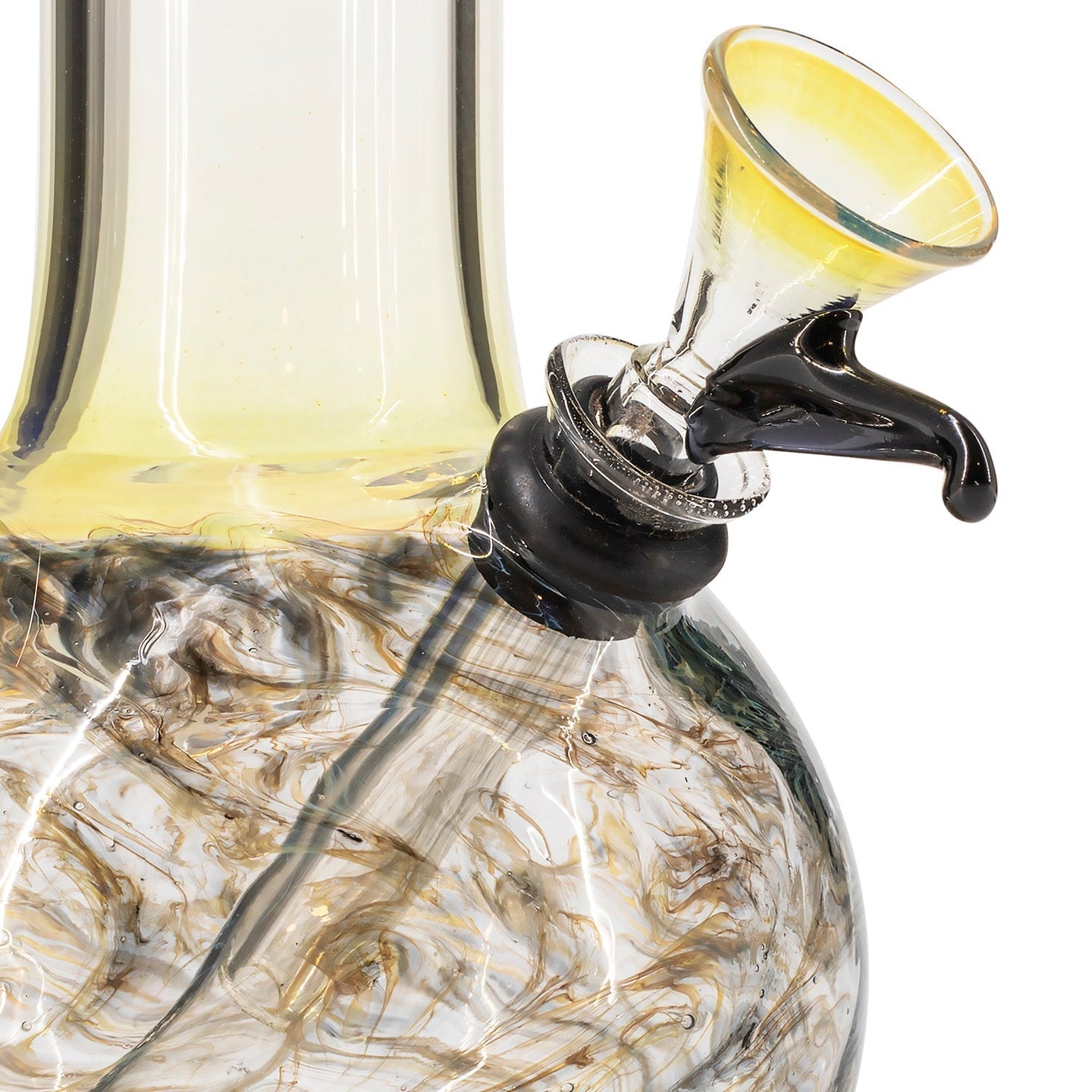 Introducing the LA Pipes Raked Tiger Stripe Bong, a must-have for any serious smoker. Standing at 8 inches tall with a 38mm diameter glass, this bong delivers smooth hits every time. The silver fumed color worked base adds a touch of elegance, while the flared mouthpiece ensures comfortable use. Equipped with a grommeted downstem and a 9mm pull-stem slide, this bong provides optimal airflow for an exceptional smoking experience. Available in various colors with a matching bowl, you can choose the one that suits your style best. Trust LA Pipes, a recognized brand in the industry, to deliver top-notch quality and functionality. Elevate your smoking sessions with the "Jupiter" Bubble Base Bong from LA Pipes.