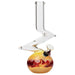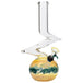 The LA Pipes "Zong-Bubble-Bong" is a timeless favorite. Its wavy zong neck sets it apart with its distinctive design. The bubble base showcases stunning silver fumed wrap-and-rake cane work. Additionally, the zong shape doubles as an ice-catcher, enhancing your smoking experience. This pipe boasts durability and functionality, featuring a flared mouthpiece, down-stem with rubber grommets, and pull-stem funnel flower bowl—all embodying the high-quality standards synonymous with LA Pipes.