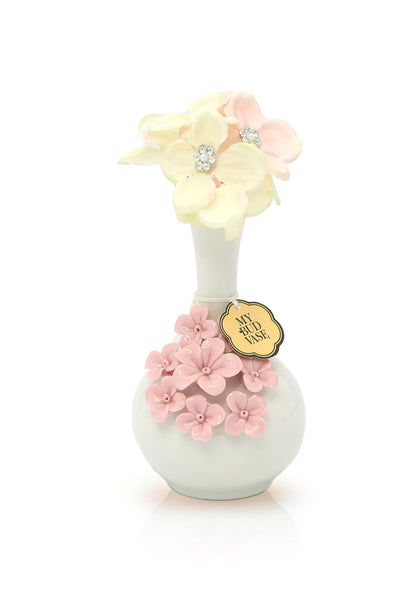 This is a perfectly-shaped white porcelain vase with delicate pink relief flowers that are as beautiful as they are functional. The pale pink paper rosebuds add the perfect amount of sophistication. My Bud Vase Monica will highlight any room's decor. The right gift to share with your closest friends!
