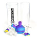 - BPA-free silicone topper, acrylic inner chamber, borosilicate glass outer base