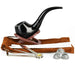 This Shire Pipes Bent Ebony Cherry Wood 5.5" Pipe is made from quality ebony-colored cherry wood. Each pipe includes a brushed-cotton pouch, a removeable charcoal filter, and a plastic stand.