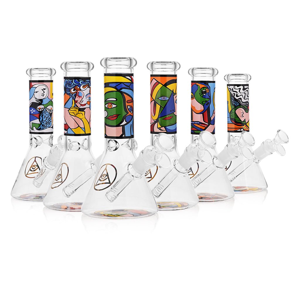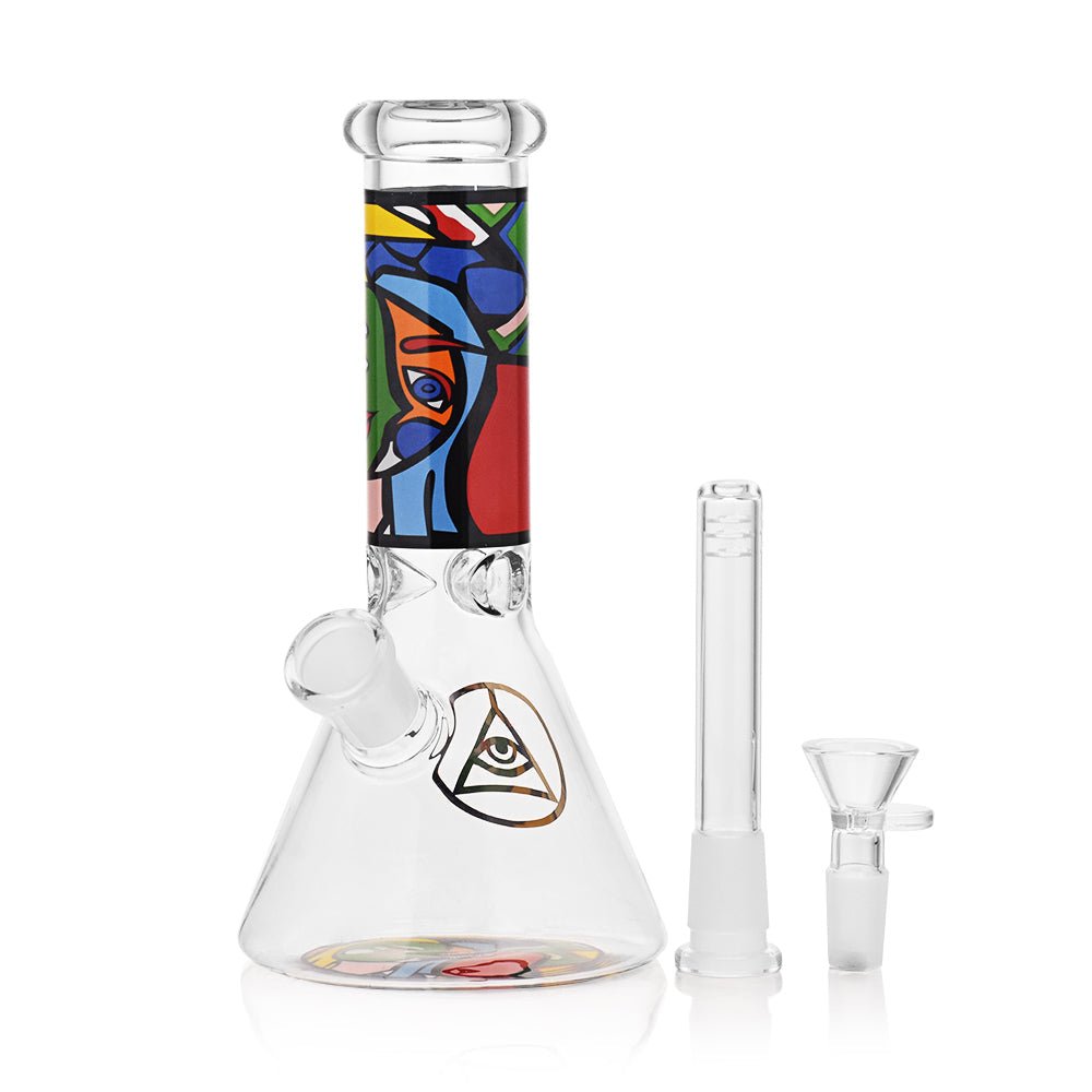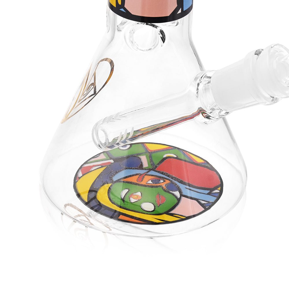 Stay Elevated with Ritual Smoke! Ritual by High Society celebrates the many ‘rituals’ that we enjoy in the smoking culture. Elevate your smoking experience with the Ritual Glass Atomic Pop 8" Beaker! Made of borosilicate glass, this beaker allows for smooth airflow and big rips with ease. The unique pop art design adds a stunning visual appeal to enhance your stony experiences.Â
