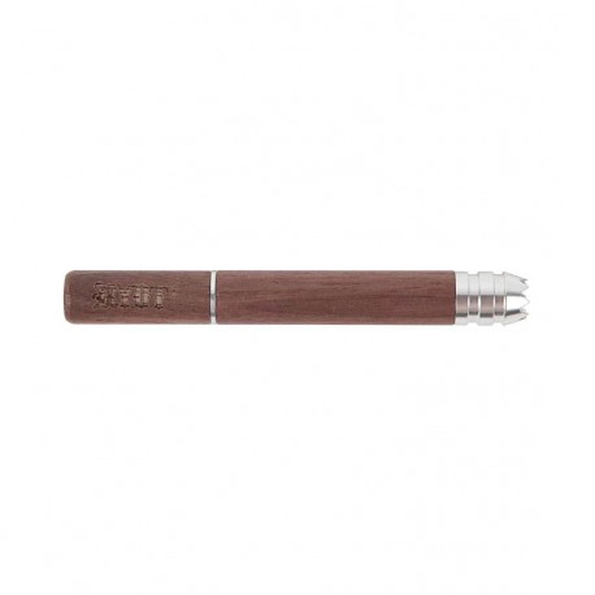 RYOT has done it again with the invention of the RYOT TWIST Bat! Creatively engineered, this RYOT Large 3" Wood Taster Twist with Digger Tip are both sleek and smart with its Patent Pending TWIST design for easy ash ejection. Load and smoke, TWIST and push forward to eject. Easy breakdown allows for easy cleaning. Never burn your lips again, and say goodbye to tar stained fingers for good!