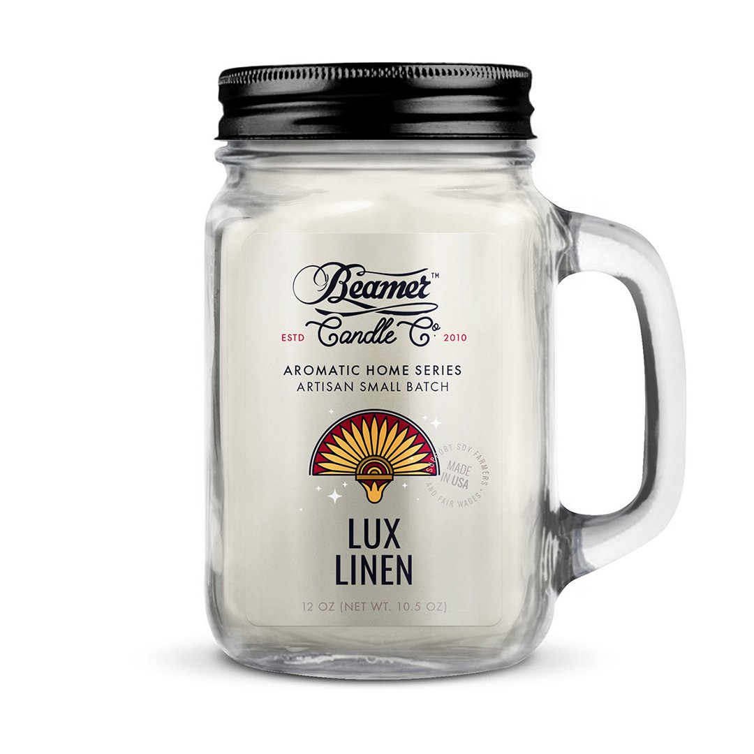 Ultra-premium soy blended wax candles, with a lead-free wick inside of a reusable glass mason-style jar.