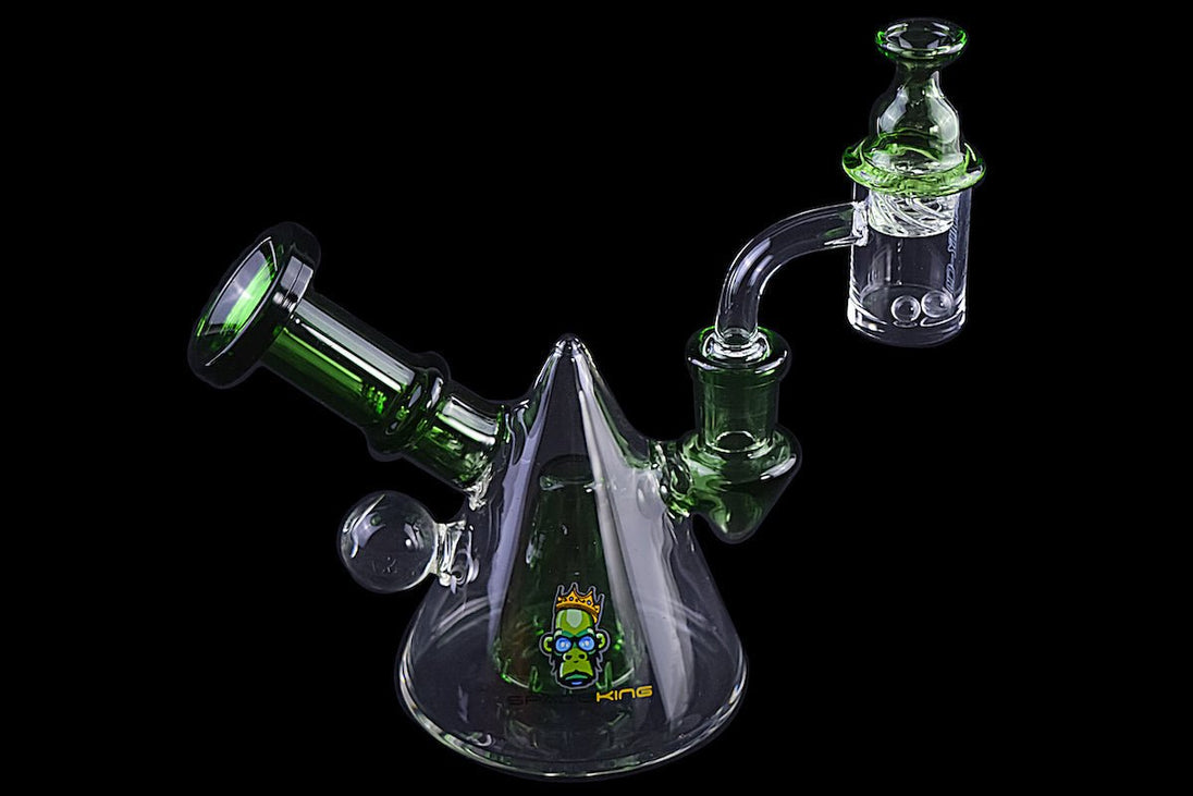 The Space King Glass 'Space Pyramid' Mini Rig is a unique pyramid shape rig with a cone head percolator, for a smooth hit, every hit. Kit comes with a banger bowl and carb cap, inside a beautiful display box. This special setup is designed with your comfort and satisfaction in mind. Smoothly draw in those clouds and get ready for an out-of-this-world smoking experience. Thanks to Space King glass, your sesh will be sent into orbit!