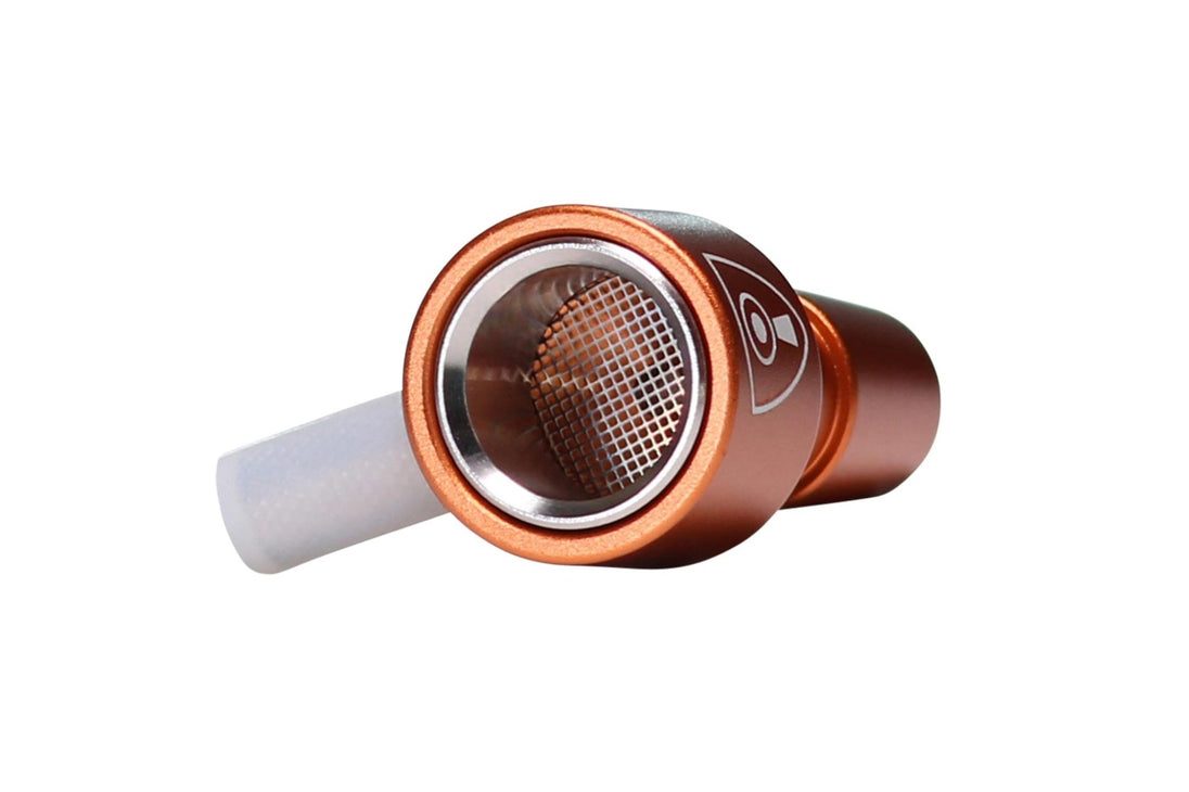 Ultra sleek shatterproof 14mm bowl is precision crafted from aerospace-grade aluminum and 304 surgical stainless steel. Secure-screen technology allows the user to invert the device, discarding ash. The unit comes equipped with a proprietary high-flow screen. Its low obstruction properties defend against product loss and ash deposit. Paired with the flat bottom design, it allows for an even burn producing minimal waste accumulation. Bowl also features an insulated grip guard for thermal protection. Significantly improve product consumption with optimal performance using this revolutionary accessory.