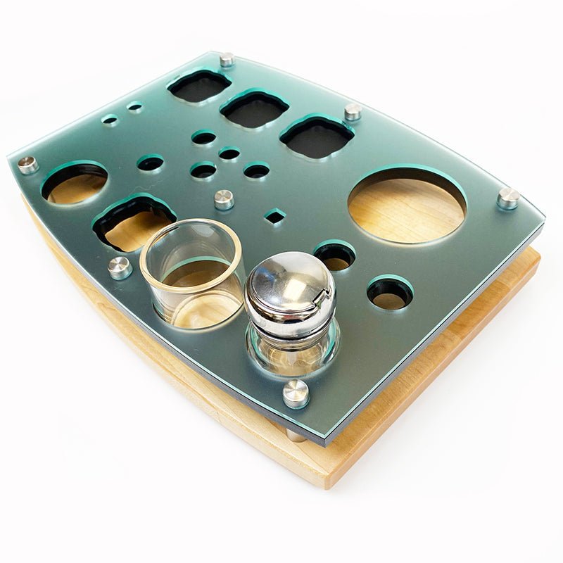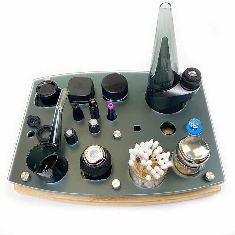 Calling all Puffco enthusiasts! This The Puffco Enthusiast's Dab Rig Station for All Things Puffco will organize all of your favorite Puffco items. It holds the Puffco Peak or Pro and 2 carb caps. It has a slot for the Hot Knife. The Puffco Plus can be stored assembled or broken down into individual pieces. The Proxy will sit comfortably into the specially designed holder and store two carb caps and the atomizer. Comes with our ISO pump and swab beaker to keep your after dab cleaning supplies all in reach.