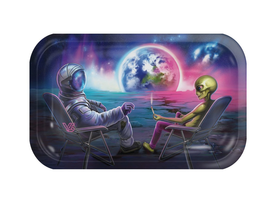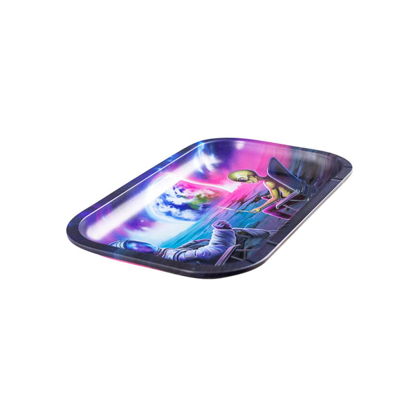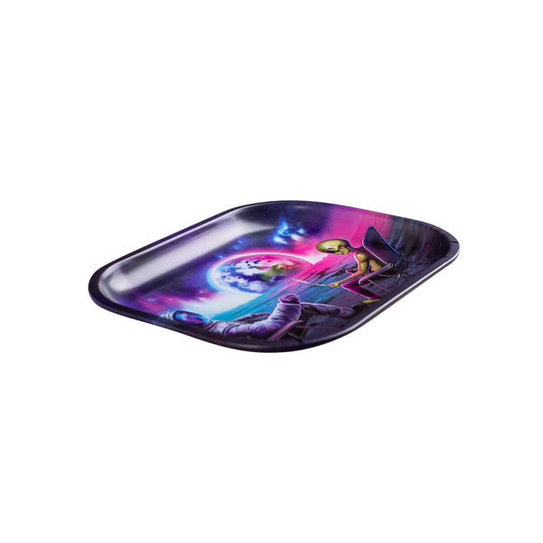 Take a hit from outer space with the V Syndicate Blunt Orbit Metal Rollin' Tray! This rolling tray will help you leave the stratosphere every time you roll one up.