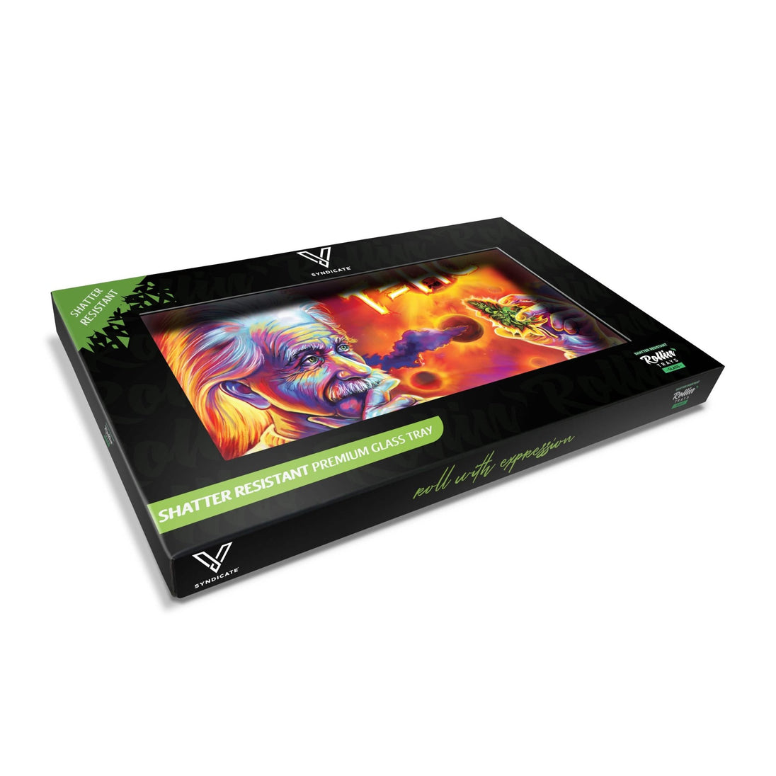 The perfect roll is relative, but with the V Syndicate T=HC2 Einstein Solar Diesel Glass Rollin' Tray, it’s easier than ever to pearl your papers. These super durable metal trays are printed feature high definition, full color designs so that you’re never left high and dry.